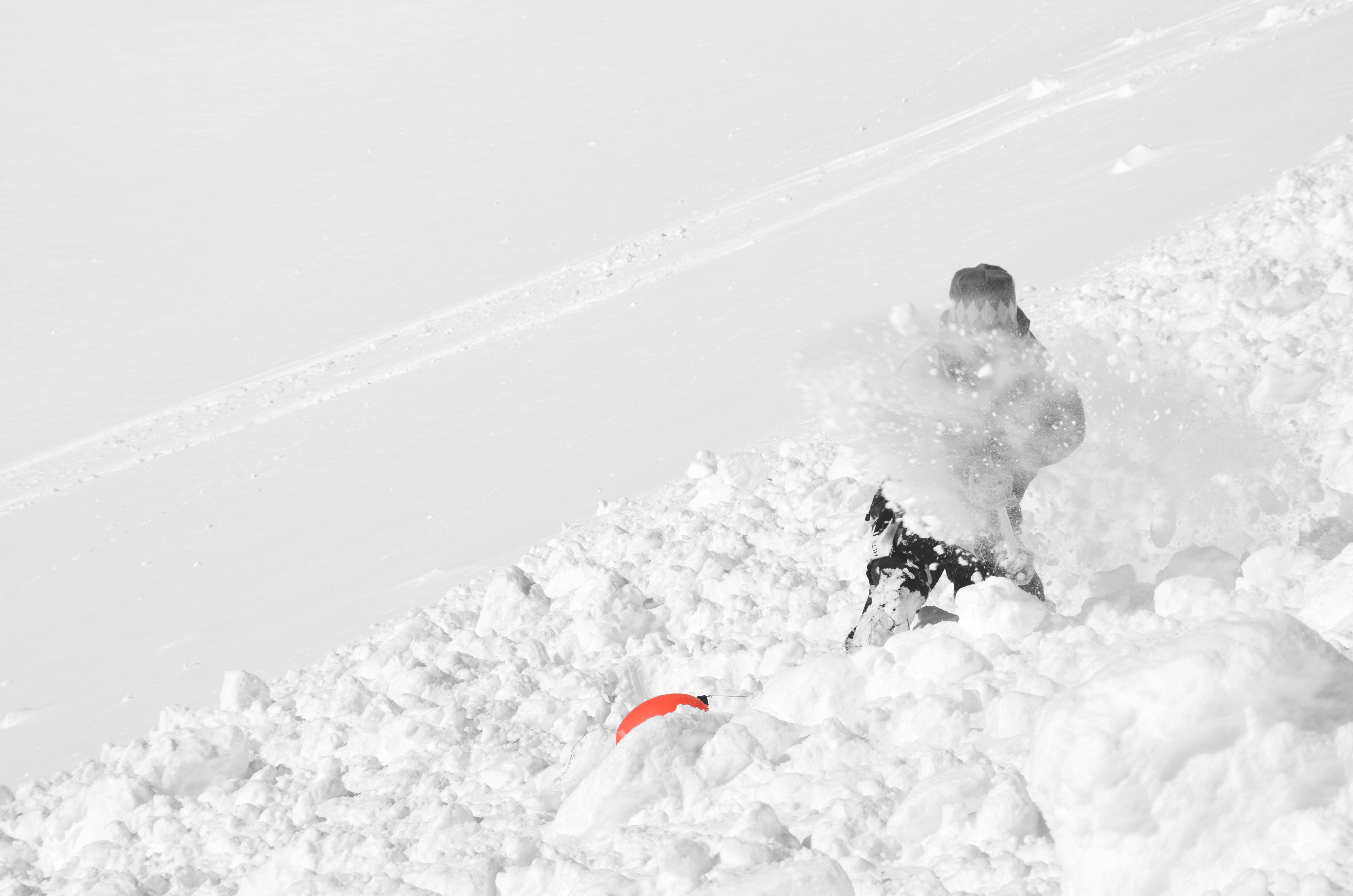Die ROTAUF Lawinenboje ist kaum grösser als ein Smartphone und einfach zu bedienen. Das Ortungsmodul wird vor dem Befahren von ungesichertem Gelände aktiviert, indem die Sicherungslasche gelöst und der Auslösegriff herausgeklappt wird. Bei einem Lawinenabgang zieht man kräftig am Auslösegriff und sofort bläst sich der Schwimmkörper auf. Nun wirft man den signalfarbenen Auftriebskörper von sich weg.