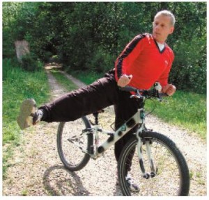 Auch beim Walken und Fahren in der Ebene fördert das Walken-Biken die Beweglichkeit enorm: „Durch das ständige Schwingen der Beine aus dem Beckenbereich vergrößert man seinen Aktionsradius zusehends“, so Süssli. Dabei wird vor allem die Bein- und Gesäßmuskulatur sichtbar gestrafft. Außerdem lässt sich mit dem Walking-Bike die Ausdauer hervorragend trainieren, und zwar besser als mit jedem Mountain-Bike. Speziell ist aber auch die Optik des Rades. Denn der Rahmen ist schwarz-weiß gescheckt wie bei einer Holstein-Kuh. So sorgt das Rad selbst im Stillstand noch für Aufsehen.