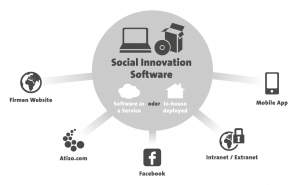 Die Atizo Software kann auch an die eigenen Bedürfnisse angepasst und mit einer eigenen Community bestehend aus Mitarbeitern, Kunden und oder Lieferanten eingesetzt werden. Die Atizo Software ist beispielsweise erfolgreich für o2 im Einsatz: https://ideenlabor.o2online.de/